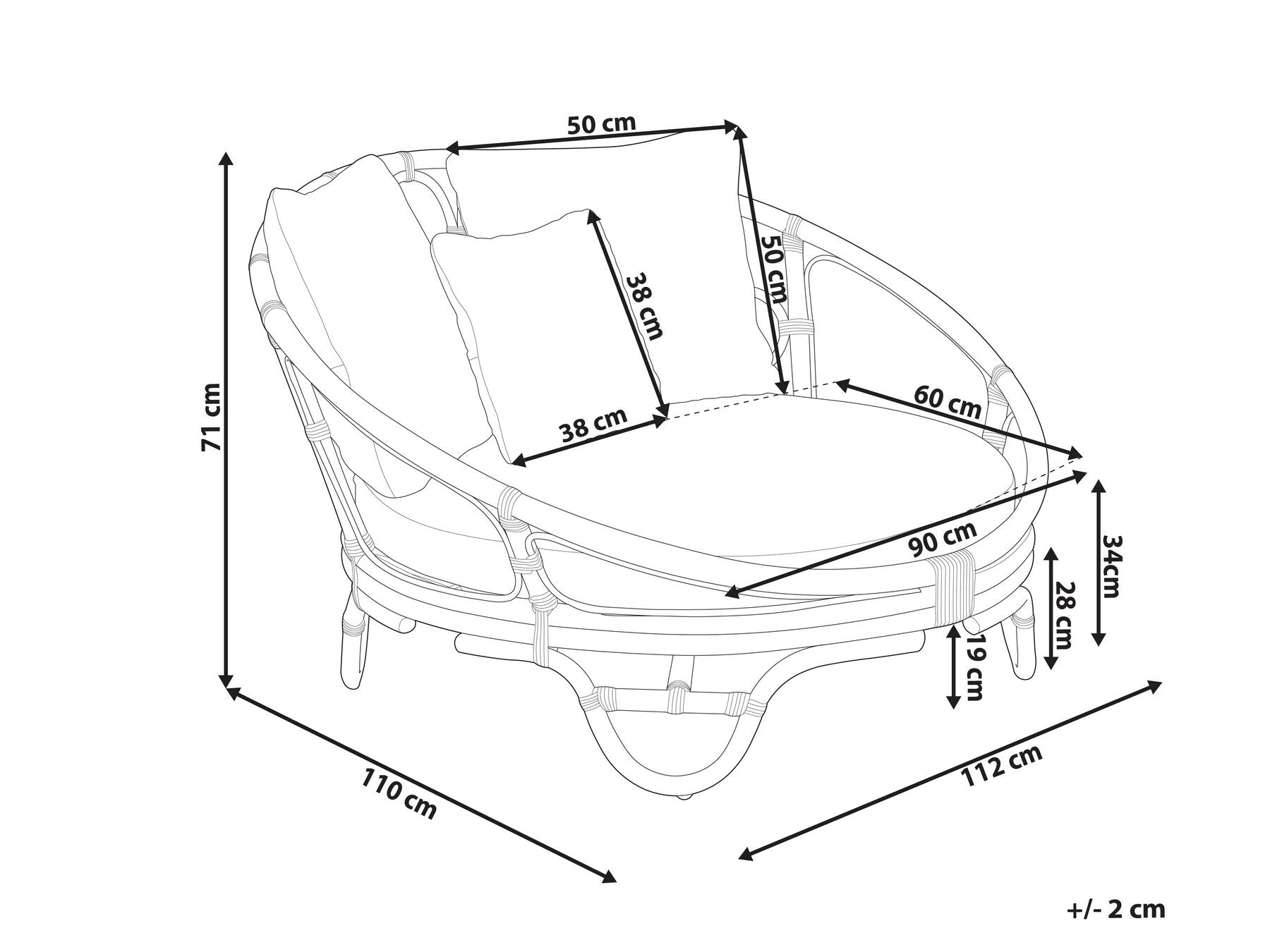 Rattan: 1. Avoid long exposure to strong direct sunlight, as well as contact with humidity and rain, 2. Clean with a damp, soft cloth and always wipe dry afterwards, 3. Furniture should be stored inside whenever not in use Polyester: 1. Hand-wash or select wool wash cycle (30 °C), unless the manufacturer recommends otherwise. Wash on the right side with zipper closed.2. When not in use, keep in a clean and dry place to protect it against atmospheric conditions.3. Do not tumble dry and do not iron.
