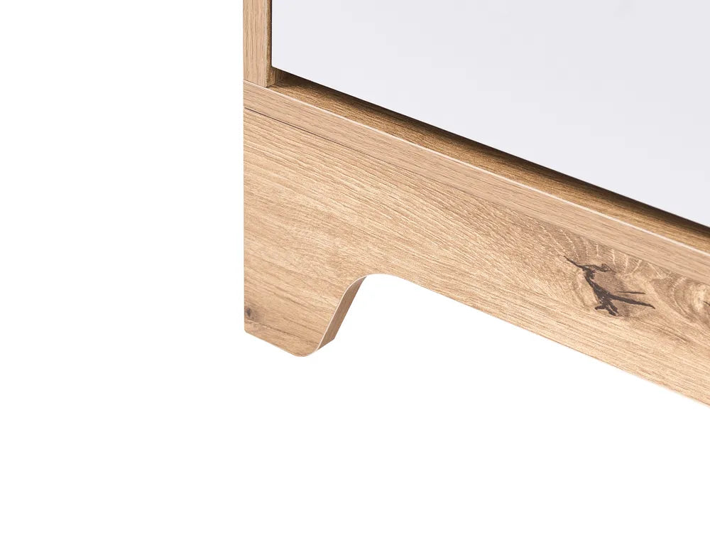 This practical shoe cabinet is a functional piece that helps keep your hallway tidy. Featuring two tilt-out drawers with dividers, it holds up to 10 pairs of shoes, ensuring proper organisation and easy access. The MDF body with oak-effect melamine is combined with white details, giving the cabinet a versatile and stylish look. Its compact design offers extra storage space while maintaining a light, modern style.