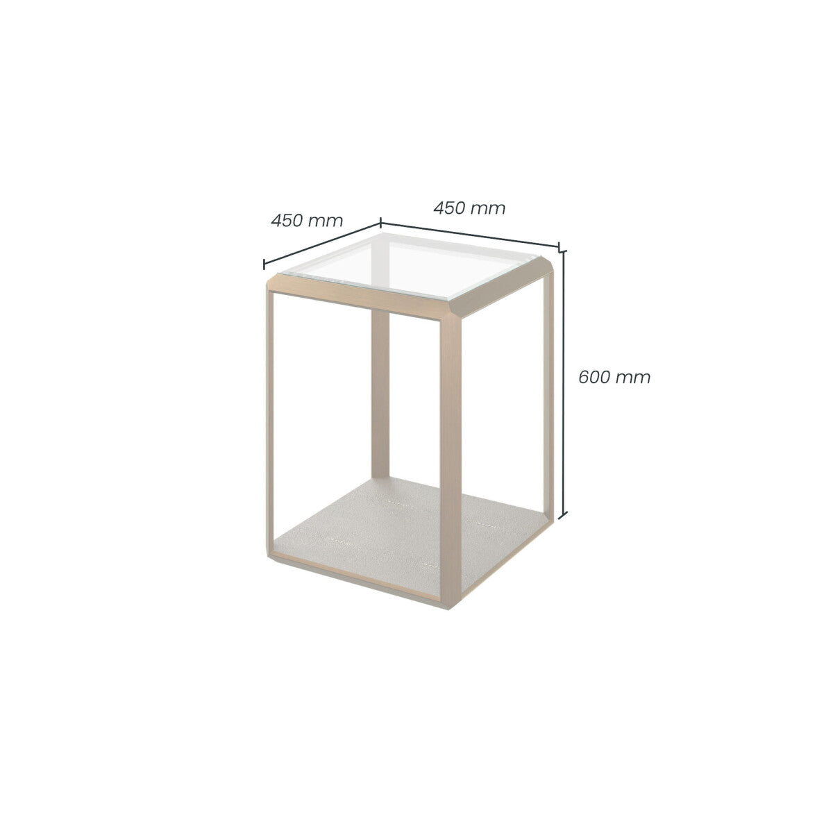 Resting below, the ivory faux shagreen base lends a tactile finish and a sense of quiet sophistication. Designed to emulate the luxurious texture of stingray leather, it adds depth and dimension while remaining durable and easy to care for. Whether positioned beside a sofa, armchair, or bed, the Elmley End Table effortlessly elevates any room with its poised design and understated glamour.