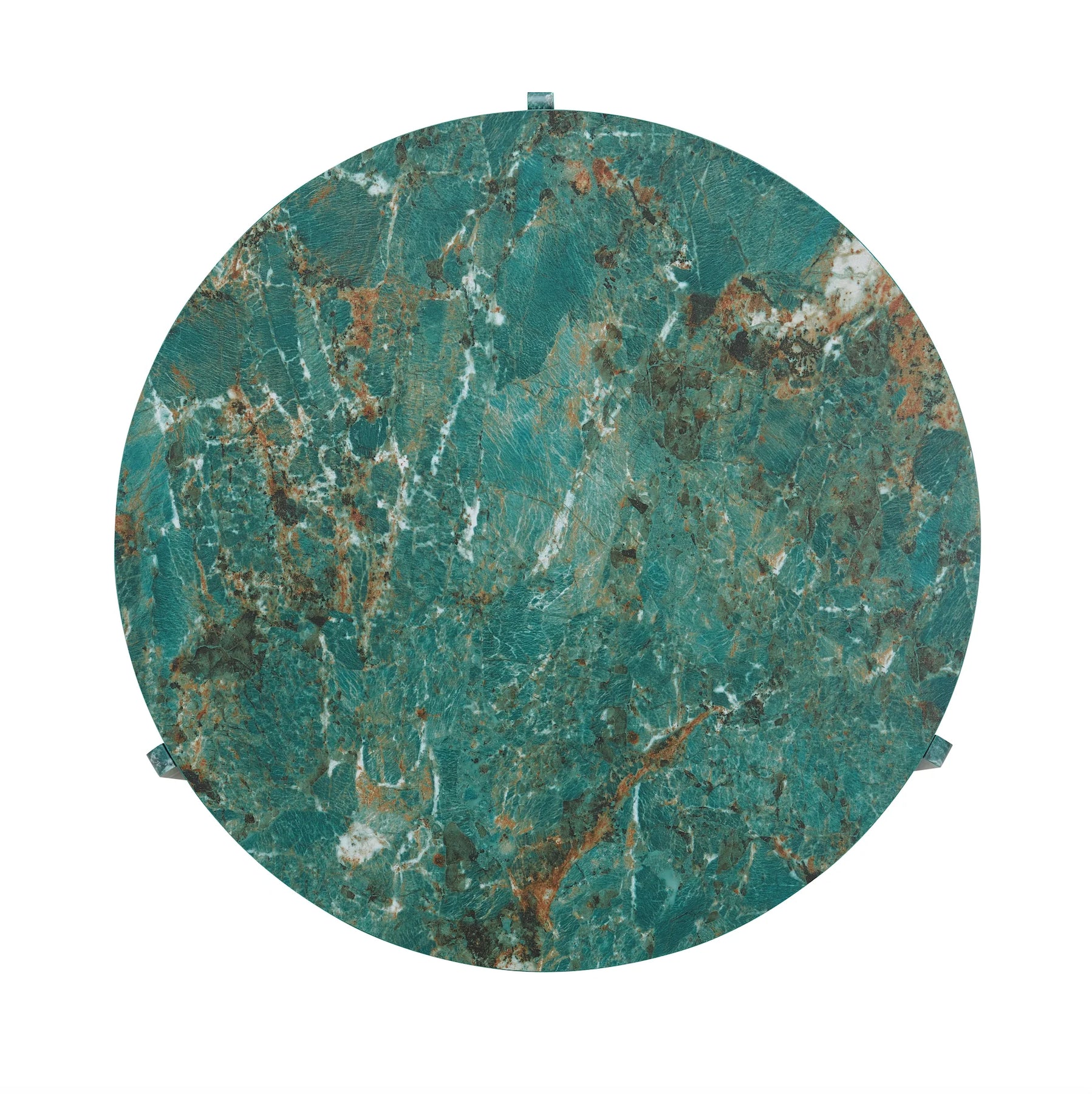 The Halo Coffee Table stands out with its sleek round design and a sleek marble-effect finish. Its circular design is complemented by three legs with rounded corners, extending beyond the tabletop's edge for a visually appealing overlapping effect. Smoothly finished edges and surfaces enhance the elegant aesthetic, making this coffee table perfect for living rooms. Designed with durable materials, it’s a sustainable choice for modern living.