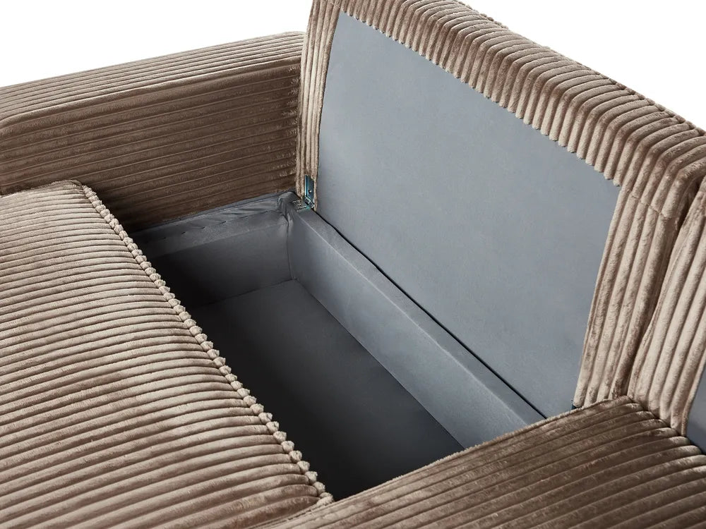 Elevate the look of your living space with this trendy, upholstered sofa bed. The sofa is made from a durable, soft-touch cord fabric that will make it stand out from the rest of the furniture in your home. Additionally, the piece features a scatter backrest and extra throw pillows, which combined with the thickly padded seat, make the sofa very comfortable to sit on. The piece also features storage space, perfect for hiding extra cushions or blankets. It can be quickly transformed into a bed, so you can invite your family or friends to stay over. What is more, the sofa is made of pet-friendly upholstery fabric, making it easy to clean off fur and pet hair.