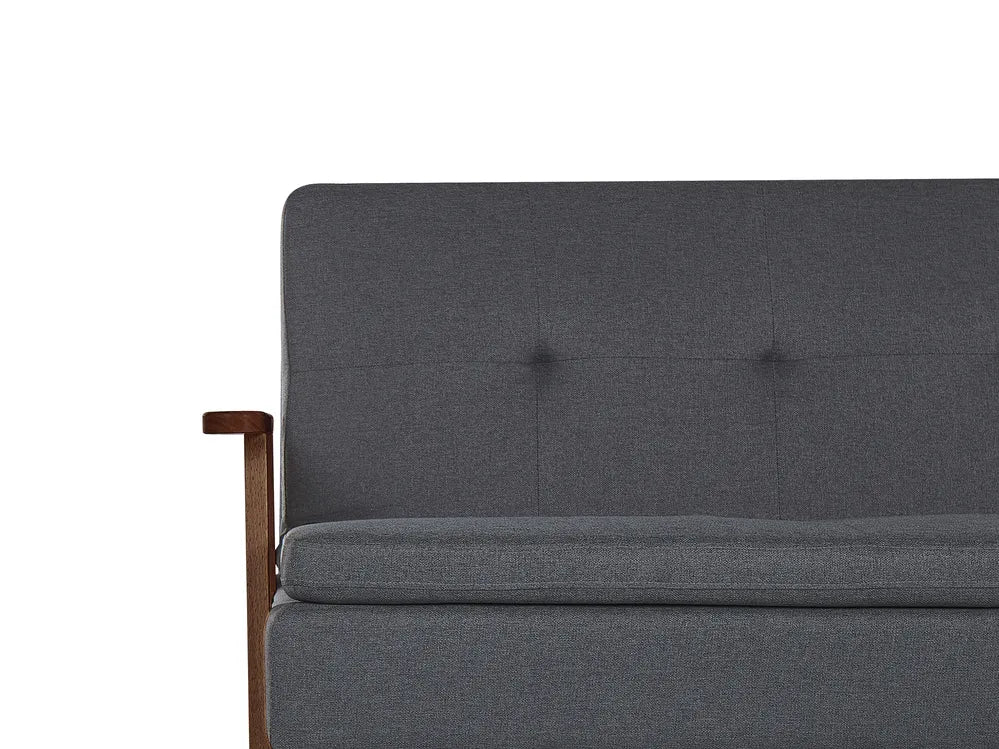 This sofa makes a practical yet stylish addition to any contemporary living area. Thanks to its modern, simple design, the couch perfectly fits in with minimalist and traditional decor styles. Tailored in durable yet soft polyester upholstery in grey, the piece features wooden armrests and legs in a dark wood tone, which give it a retro touch. It can be easily converted into a comfortable bed or put in a reclining position thanks to a convenient click-clack mechanism.