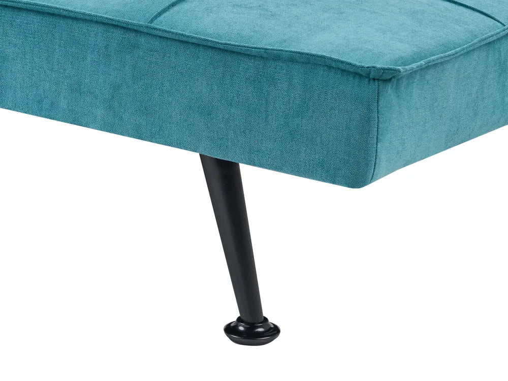 This fabric sofa is a stylish addition to any modern or minimalistic interior. During the day, it provides an ideal spot to relax or to doze off after a long day at work. At night, it can be used as a comfy place for a sleepover. It easily converts into a sofa bed within seconds, thanks to the adjustable backrest. Upholstered in durable polyester, the seat and back feature a subtle tuft. Black metal legs perfectly accentuate the modern design.