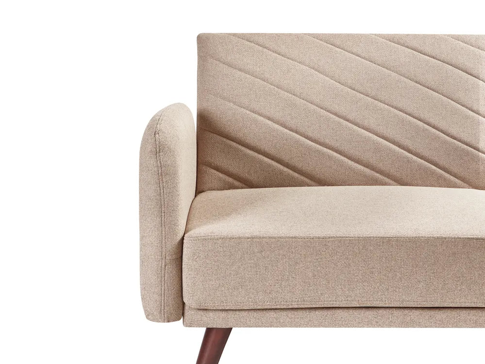 This sofa bed livens up every living room and goes well with a variety of décor styles, whether glam, modern or mid-century. The diagonal stitch pattern on the adjustable back, as well as the rubberwood legs in a dark wood tone, give the sofa a Scandinavian look. Upholstered in soft-to-the-touch, faux linen fabric in beautiful colour, the sofa looks cosy and inviting. Thick, foam-padded cushions provide the utmost comfort. Thanks to the sleeper function, it also works perfectly as a guest bed or a place to take a nap.