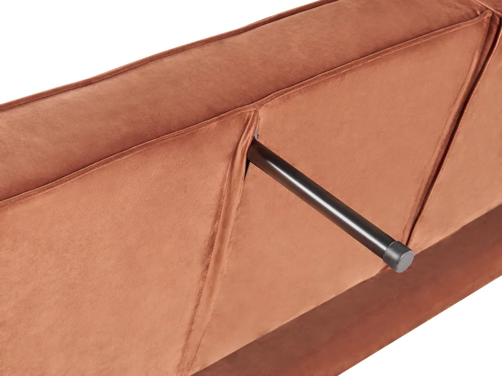 Elegant sofa, tailored in smooth and soft polyester velvet, flawlessly complements interiors in modern, minimalist, or glam decor. Featuring a solid, wooden construction, the piece is generously padded with fluffy foam for the ultimate sitting comfort. Its delicate tuft, decorative stitching and glossy metal legs give it a glamour accent which perfectly contrasts its straight, classic design. The sofa reclines into a comfortable bed for two, which comes in especially handy during occasional sleepovers.