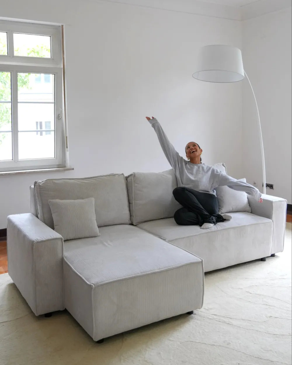 1 X Corner Sofa Bed, Off-White, cord, 1/2, LX (43.0 kg) 125.00 x 77.00 x 59.00 cm (L x W x H)