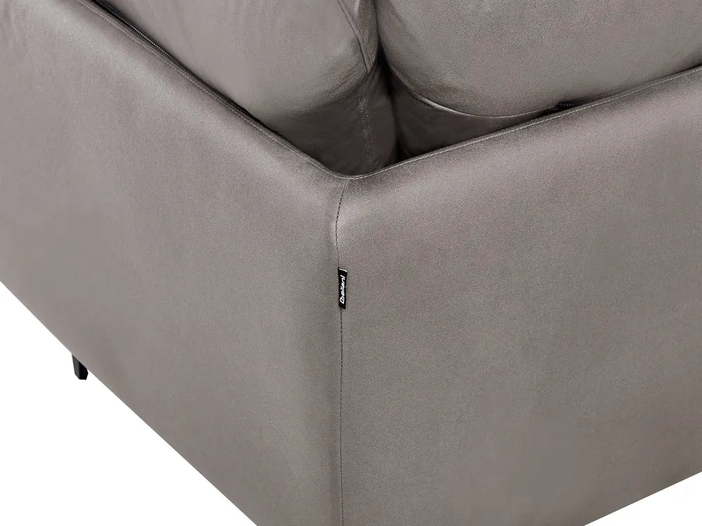 Elevate your living space with this sleek and elegant sofa, designed to be the perfect centrepiece for interiors inspired by modern or industrial style. Upholstered in durable, low-maintenance vegan leather, it offers comfortable seating for three people and the sturdy metal legs provide stability while adding a stylish touch. The additional small cushions guarantee extra support for a truly relaxing experience.
