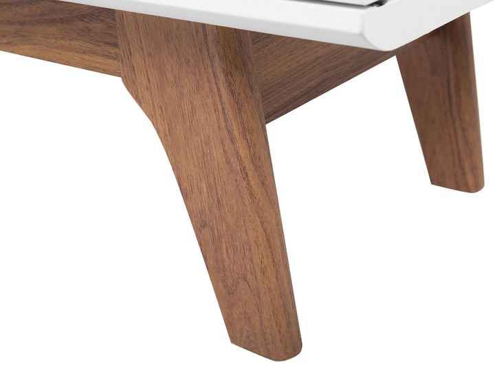 This retro-inspired TV stand made of engineered wood will be a marvellous addition to your living room. The product of solid craftsmanship, the construction is exceptionally durable to withstand daily usage without losing any quality. The amply-spaced drawers allow you to store all your living room appliances and more. The backside slot allows for easy cable management, keeping the TV stand looking clean and tidy.
