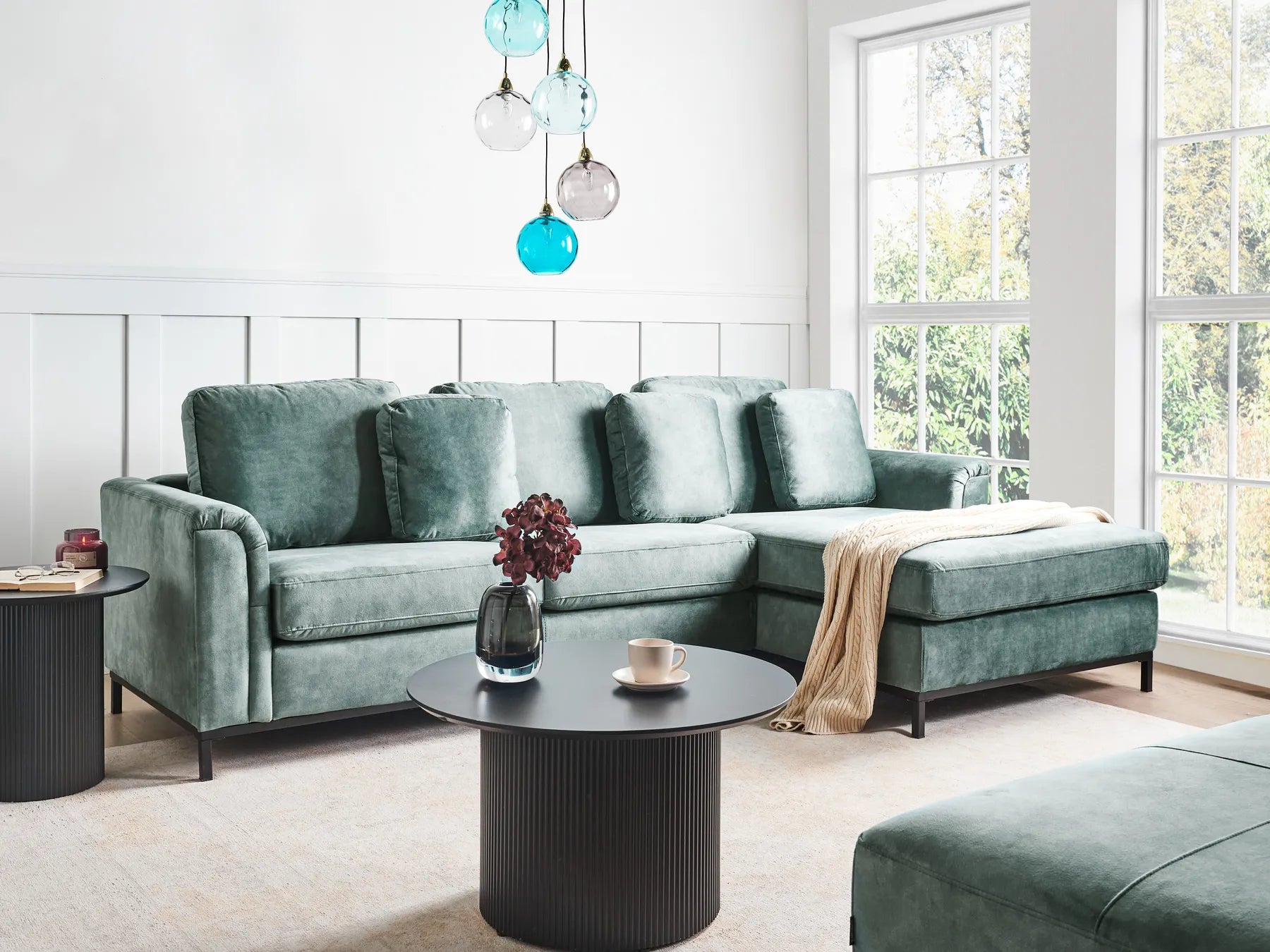 Corner Sofa 4 Seater Velvet Teal Left Hand Thremo