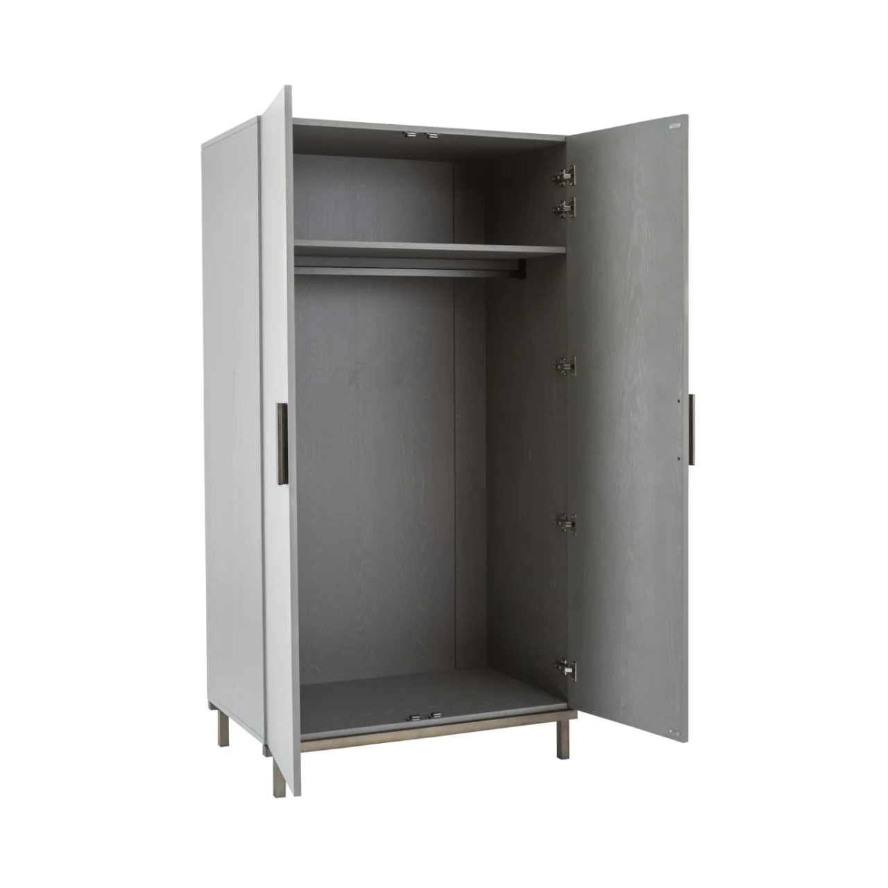 Our lavish Lilly Wardrobe exemplifies contemporary bedroom design with its sophisticated grey oak wood construction and refined bronze hardware. This striking double wardrobe combines aesthetic appeal with practical functionality, featuring soft, neutral tones that complement any interior scheme. The elegant bronze handles add a touch of luxury whilst maintaining clean lines that work seamlessly with modern décor. Designed as a centrepiece for the Lilly bedroom collection, this wardrobe offers substantial storage capacity across its dual sections, making it ideal for organising your wardrobe essentials. The quality craftsmanship ensures durability and longevity, whilst the timeless colour palette guarantees it will remain a stylish addition to your bedroom for years to come. Whether you're furnishing a master suite or guest bedroom, the Lilly Wardrobe delivers both form and function with understated elegance.