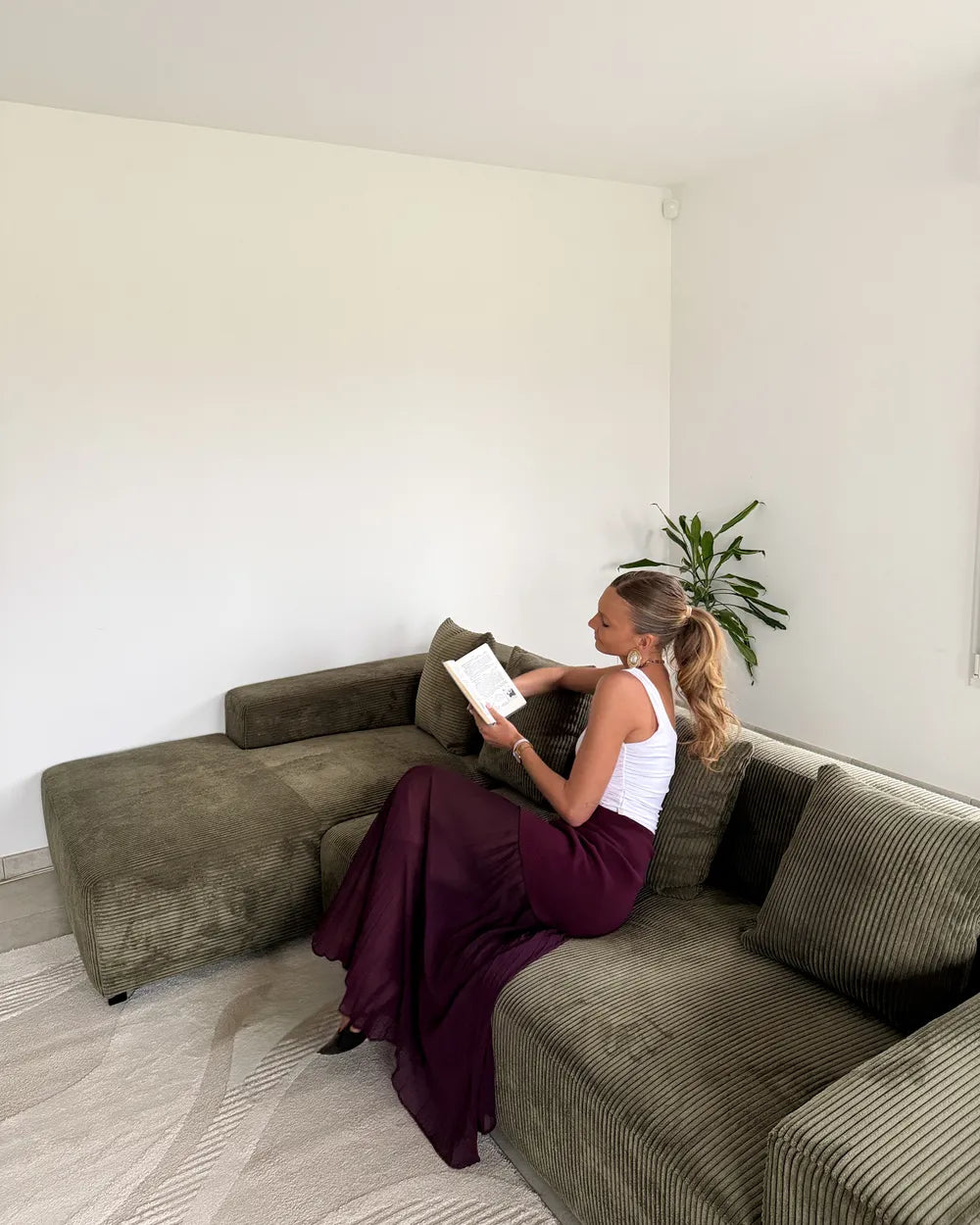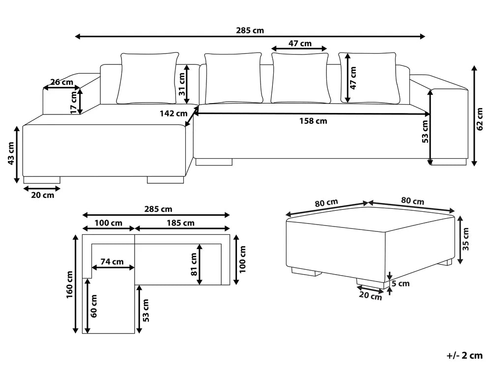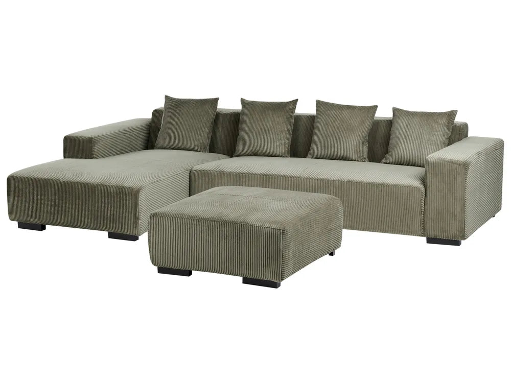 Add a touch of luxury to your living room with this comfortable corner sofa with ottoman. Upholstered in a pleasant to the touch corduroy fabric for a sophisticated look, it comes with additional cushions with removable covers to ensure a great seating experience. The sturdy construction guarantees durability and longevity. The classic design makes the sofa an excellent addition to any modern interior.