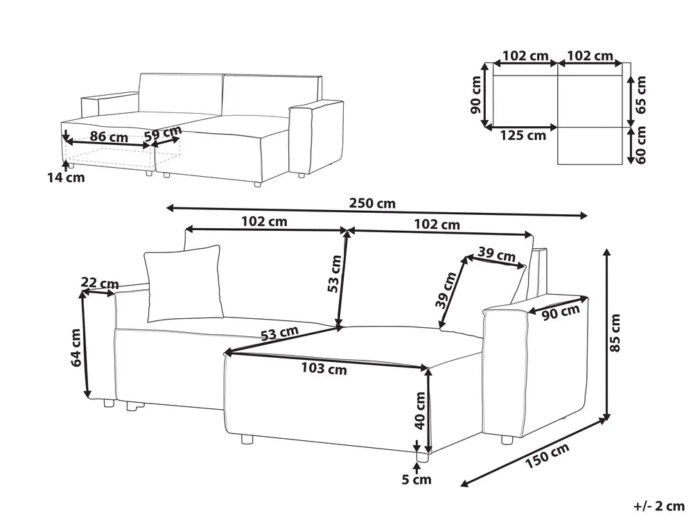 Indulge in comfort and versatility with this corner sofa featuring a convenient sleeper function. Embrace its elegant design, complemented by included cushions that add a touch of sophistication to any space. Upholstered in polyester fabric, this sofa is a durable and easy-to-care piece. Enjoy its functional design, providing a cosy daily seating arrangement and a comfortable sleeping option at night. Upgrade your living area with this multi-functional, easy-to-maintain corner sofa, offering style and functionality.